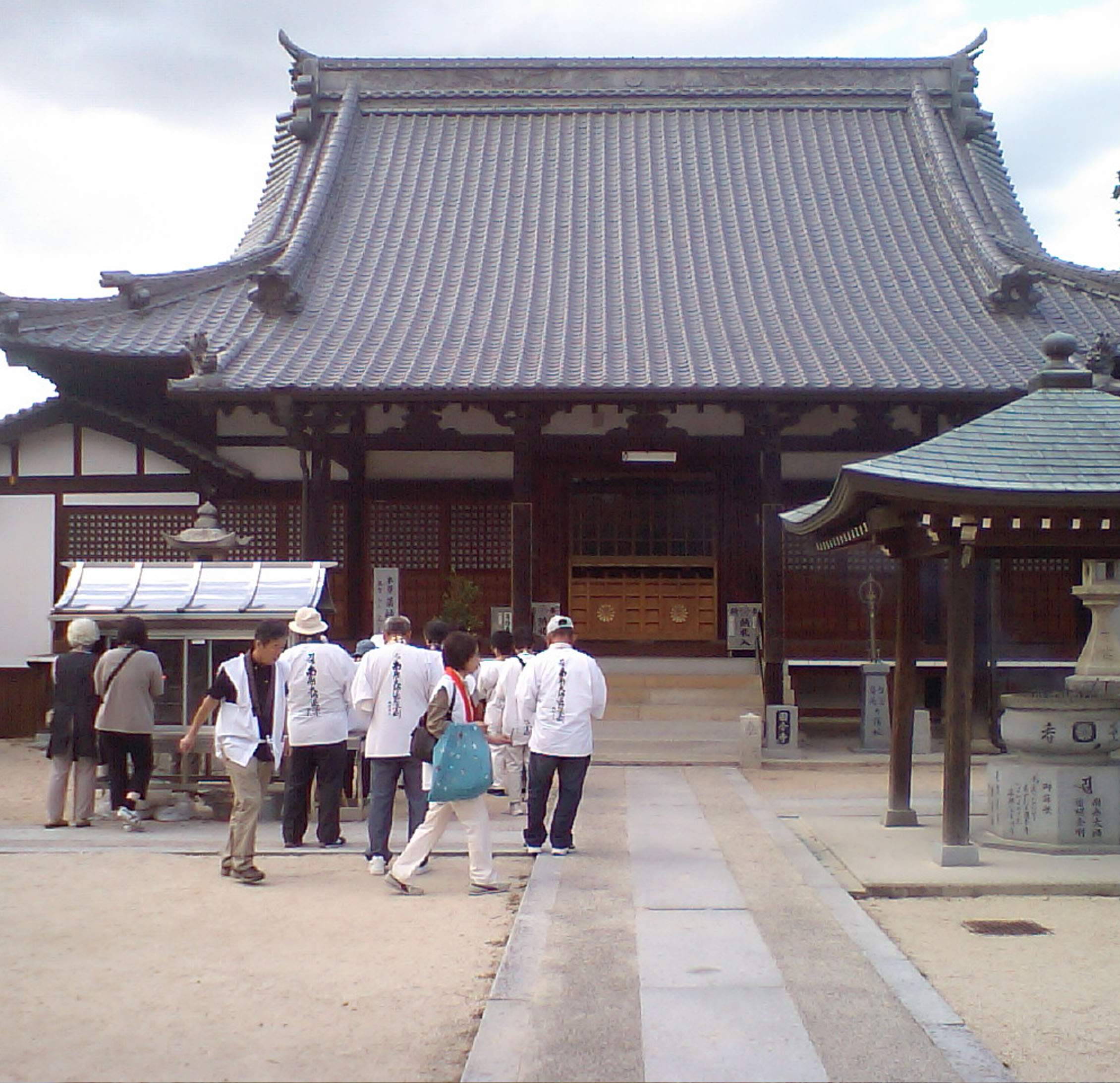 山門の手前にタオルの土産物を売る御店がありますが、この店の主人、何時も「南無大師遍照金剛」と唱えながら、お接待を店の前を通る巡拝者皆さんにされてますが、中には避けて通ったり、要らないと手を横に振り逃げる方がいます。公認先達がついて案内をしてるのに先達は基本のマナーをキチンと身に就けて、先達の任務を全うして欲しいものです。
